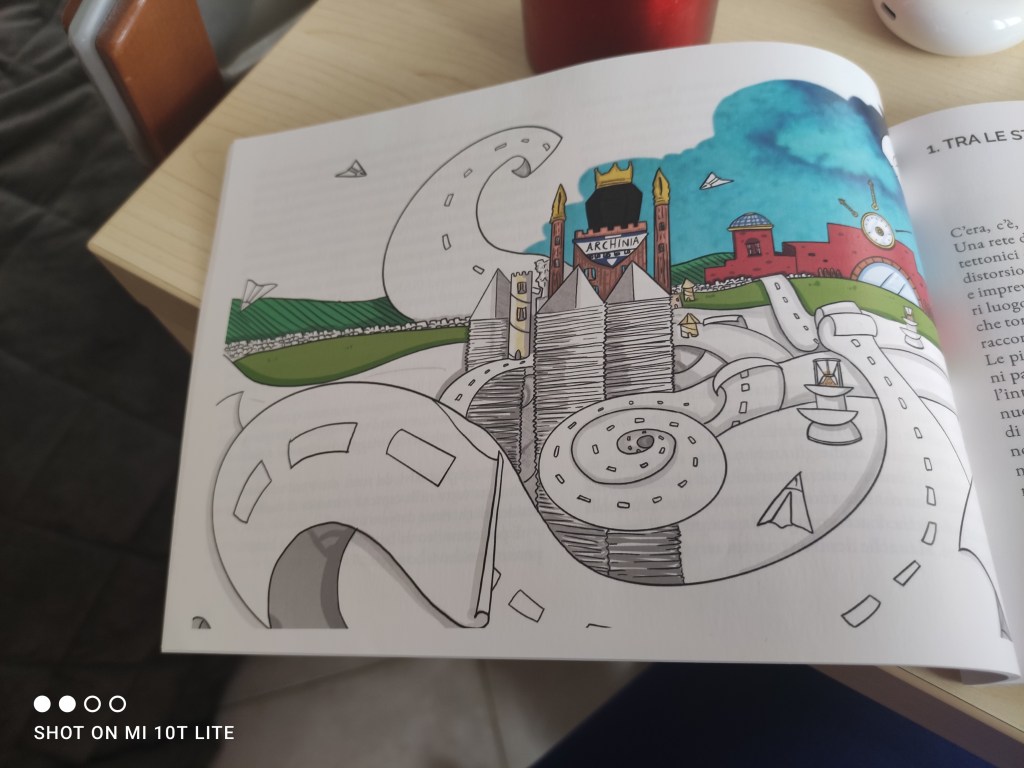 Non è facile fare foto a un testo con questo formato allungato, ma era doveroso farlo per mostrarvi la cura grafica impiegata da Salvatore Renna in questo lavoro, a partire dalla presentazione della città di Archinia, qui di seguito: