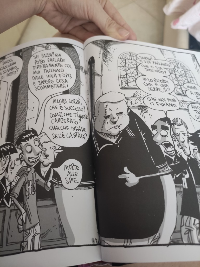 1. Anch’io ho guardato entrambe le serie di Zero Calcare e ne sono rimasta piacevolmente sorpresa, quindi approvo la tua scelta di voler approfondire anche le opere meno conosciute dell’autore. Posso dire che bellino il coming out di Sara? Esattamente come dovrebbe essere, semplice e onesto, senza la paura di ripercussioni o di rimanere in attesa di chissà quale reazione dell’interlocutore. E sì, non sei la sola, se non avessi specificato che quel personaggio secondario si chiama Corrado, avrei pensato che fosse proprio Cesare 😅