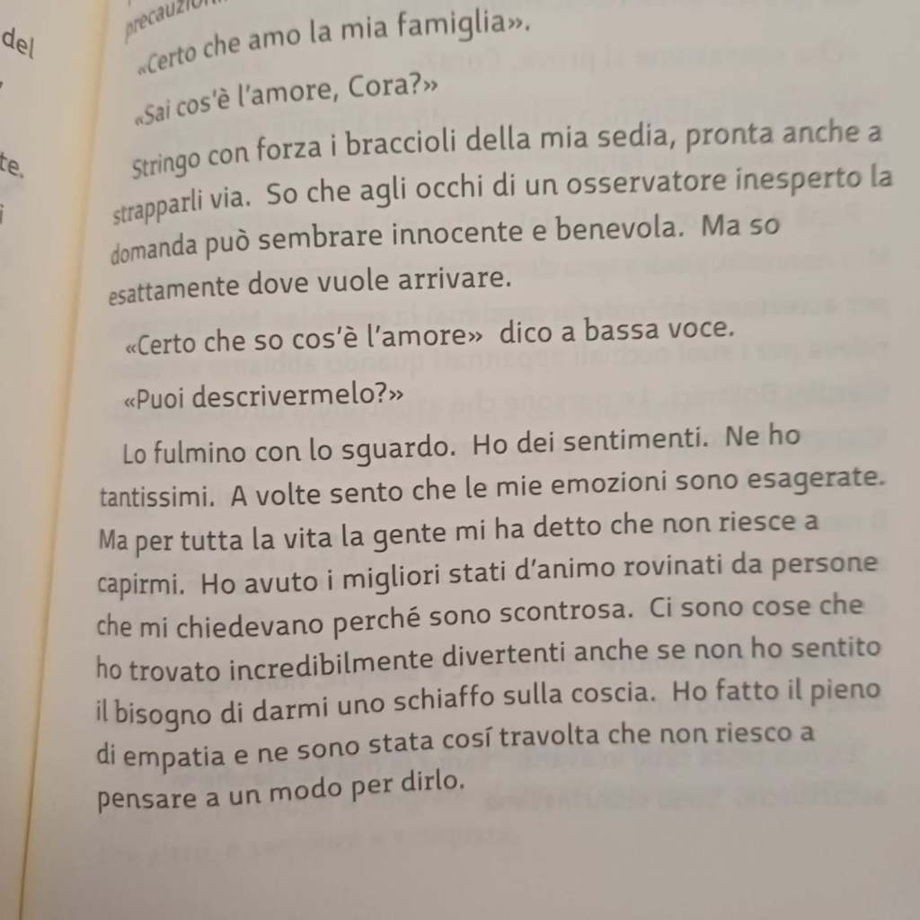 La prima conversazione tra i due ragazzini può suonare surreale se letta da una prospettiva neurotipica, invece, a me a fatto morire dal ridere e mi è sembrata così realistica perchè priva di convenevoli e chiacchere di circostanza. Il mio momento preferito tra loro è quando, durante un sovraccarico di lei, Adrien le sta vicino limitandosi a sfiorarle i polpastrelli e non le prende la mano perchè capisce che sarebbe troppo sovrastimolante per lei. La loro amicizia è un sodalizio tra neurodivergenti in cui lui capisce tutto quello che la fa soffrire e cerca di farla stare meglio, la sua esuberanza aiuta molto nell’intento. Adrien spinge Cora a indagare proprio sul lavoro del padre per scrivere un articolo.